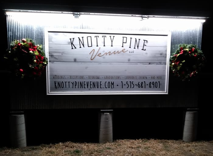 Whether you are looking for the perfect place to say “I do,” a location for your high school reunion, or a facility for hosting your next corporate event, Knotty Pine Venue is the perfect destination. Conveniently located in Winterset, Iowa we are a premier event venue with 5,760 square feet of space and room to seat up to 250 guests. Situated on 4.65 acres in the heart of Madison County, it is the perfect venue for any large event.